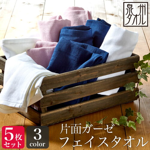 <同色5枚セット>ガーゼフェイスタオル (片面ガーゼ)【泉州タオル】(33×82cm) ガーゼタオル 薄手 速乾 湯上り 日本製 まとめ買い ふわふわ 赤ちゃん 生地 綿 無地 布マスク 手作りマスク 手づくり